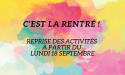 Nous serons présents sur la place aux associations le samedi 2 septembre de 10h00 à 18h00. Venez découvrir nos activités et vous inscrire. Cette année encore profitez du Pass’ découverte à 10€ pour tester nos activités jusqu’au 30 septembre Les cours commenceront la semaine du 18 septembre. Les plannings sont disponibles sur le site en cliquant sur l’activité de votre choix. Nous avons le plaisir de vous […]